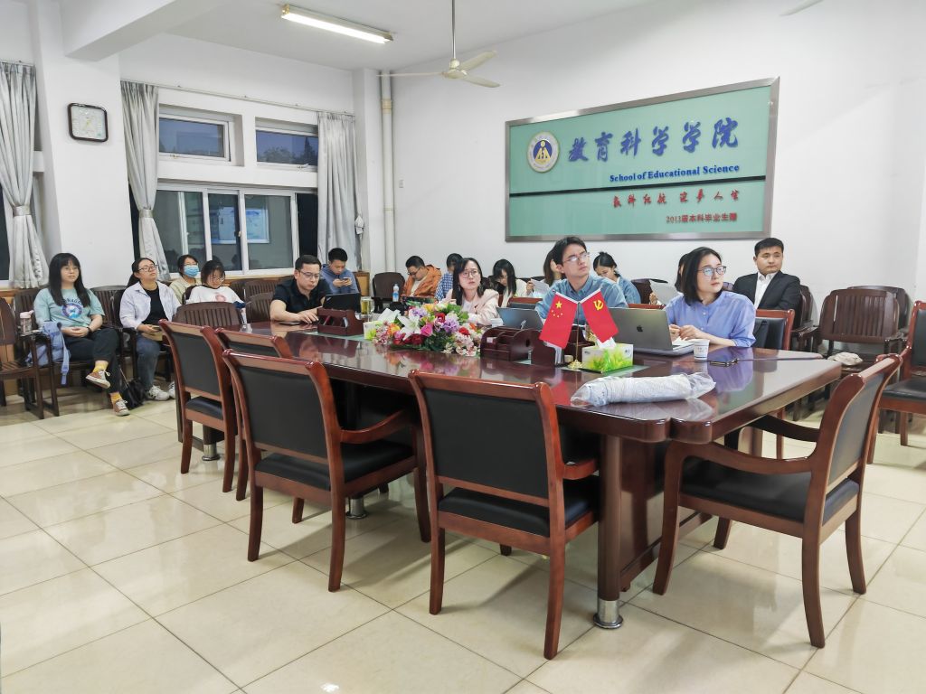 本网讯(教科院 俞晓雨)为增强大学生的创新创业精神和实践能力,提高教育学专业的人才培养质量,5月19日晚,18级教育学专业于田楼b座308会议室开展大学生创新创业训练计划项目评审答辩会,徐赟、陈娜、江珊、陈元龙四位老师作为评审专家,18级教育学专业全体同学参与,会议由专业负责人徐赟老师主持。