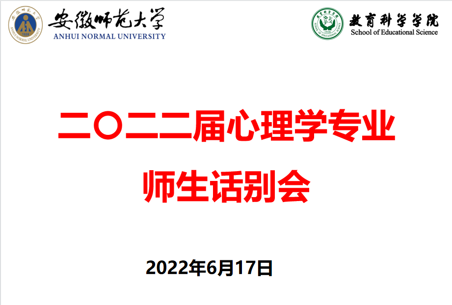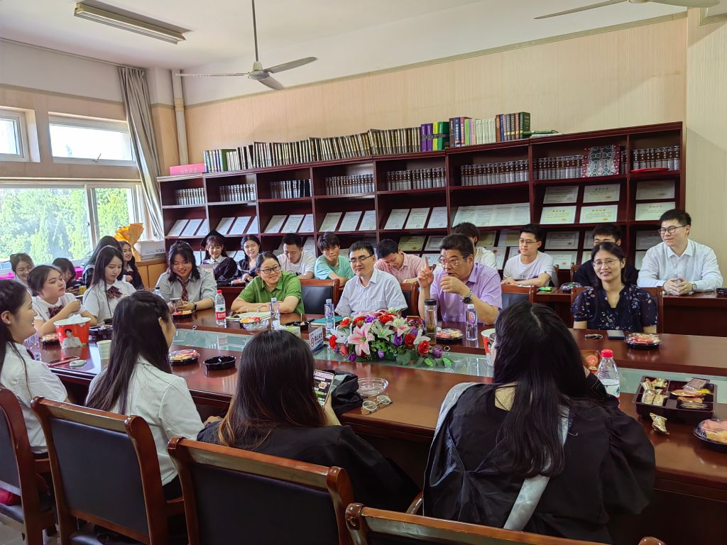 本网讯(教科院)时光荏苒,岁月如梭。转眼间,2018级学生即将走出校园,踏上新的征途。为了给本届毕业生留下美好回忆,增进师生友谊,心理学专业于2022年6月17日在院408室组织召开师生话别会。会议由专业负责人王礼军主持,葛明贵、宣宾、韩建涛等专业教师,以及2022届心理学毕业生参与会议。学院党委副书记杜凤出席指导。