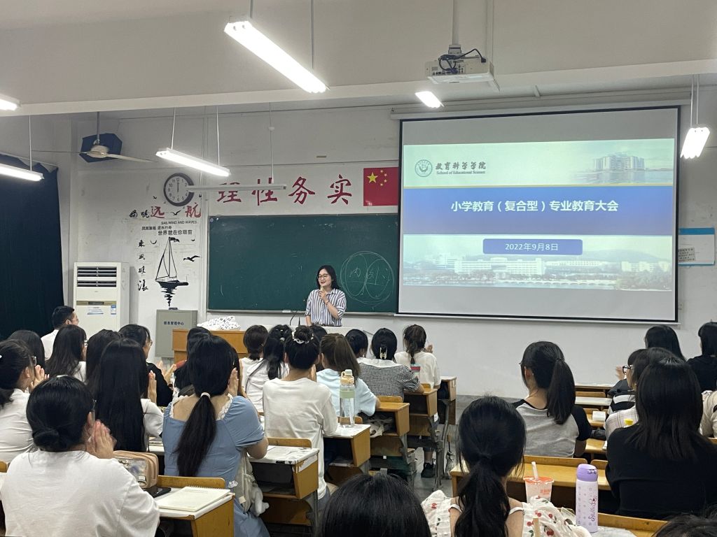 会议持续一个半小时左右,过程秩序井然,学生认真聆听并思考。此次专业教育大会为同学们自身的专业学习与自身发展指明了发展方向和目标,能够促进班级优良学风班风的建设,激发同学们的专业情感,指引同学们在专业学习和生活中不断成长,也为接下来小学教育(复合型)专业的各项教育教学活动的有序开展打下了良好基础。