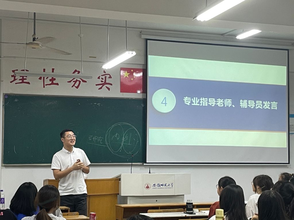 会议共有五项内容。专业负责人陈娜老师从培养目标、课程设置、教学方法、专业特色活动等方面介绍小学教育(复合型)专业人才培养的基本安排,重点强调了专业强大的师资力量、丰富的特色实践活动以及创新的、多样化的教学方法,使学生对该专业学习和自身成长发展有更清晰的了解。指导老师肖龙结合自己的理解向大家简要阐述小学教育(复合型)专业的有关事项。他指出,小学教育(复合型)专业是一个培养高素质、专业化、创新型小学教师的专业,其中蕴含了学院对大家的学习与发展期待,并表示自己会尽力做好专业指导老师,期盼与学生一起共同成长。19级小学教育优秀学生代表江宇璇和19级教育学优秀学生代表吴君瑜分别与同学们进行了学习经验交流。江宇璇以图片和视频的形式,从专业课程和实践活动两个方面为同学们展示了小学教育专业化的课程教学以及丰富多彩的实践活动。吴君瑜结合自己的学习经历,从专业课学习、考研、学习方法等方面与大家分享了自己的学习经验。经验分享全面、丰富,契合同学们的学习需求,深受同学们的欢迎和赞同。