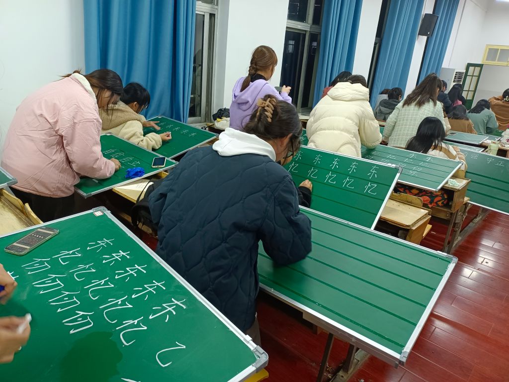 练字是一个漫长的过程,没有人能一蹴而就,需要持之以恒地练习。本次硬笔书法楷书练习交流活动的举办为小学教育(复合型)专业和教育学专业的学生搭建了一个良好的学习交流的平台,通过书法老师的分享经验、同学们现场练习、互相学习交流,有效地帮助了小学教育(复合型)专业和教育学专业的同学们更好地了解掌握硬笔字和黑板字的写字技巧,积累写字经验,为同学们今后写出一手好字、漂亮字,将自身书法优势与师范技能水平相结合,提升师范生综合素质打下坚实的基础。