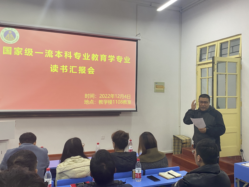 本网讯(文/谢雅雯 乔琳颖 图/谢雅雯 )12月4日晚,国家级一流本科专业建设点教育学专业在教学楼1108教室成功举办第十次小组活动汇报会。小组指导教师杨晓奇、徐赟、柳丽娜、徐群、江珊、杨俊铨、陈元龙以及嘉宾教师肖龙、陈晨、闵韡、魏晓敏、位涛和胡微应邀出席此次活动。20级、21级教育学专业全体本科生及22级教育学类部分同学到场参加,并由20级教育学张紫涵担任汇报会的主持人。