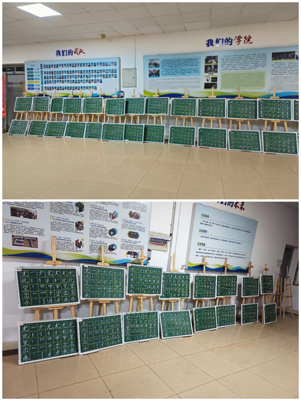 写好字是人的一张名片,更是一名教师的名片。作为师范生,我们更应该练好字,才能为人师表。2022级小学教育(师范)专业本学期进行了板书、硬笔书法练习活动。同学们会在每周的固定时间集中练习一次,同时按要求在田楼B座进行晒字活动,同学们轮流将自己的板书放到指定位置展示,由班主任老师、专业负责人进行指导和检查。同学们将身心融于笔端,把小小的黑板当作舞台,尽情展现板书的魅力,演绎不同的精彩。