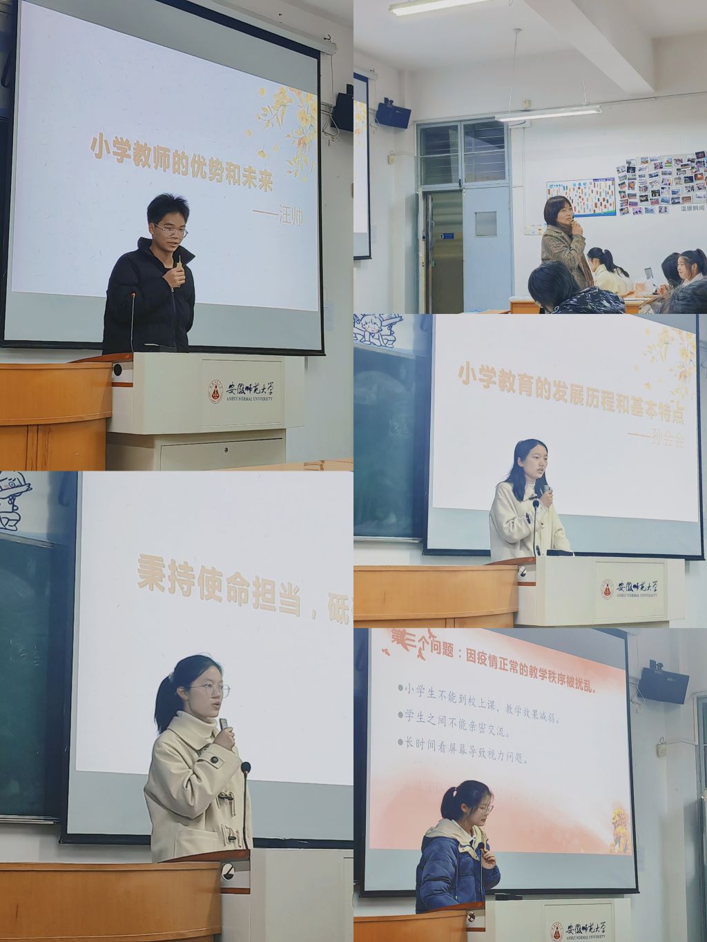 主题演讲比赛系列活动以班级为单位进行,各班分组进行,每组以不同的主题展开演讲,每位同学都参与其中,分享了自己的见解和观点。每班分四至五组,每组十余人左右。其中22级小学教育(师范)2班各组主要围绕“扬起育人之帆,落实心理教育”“教育的意义”“小学教育的发展以及未来对教育工作的规划”“如何做好小学教育的思想建设”等主题开展。