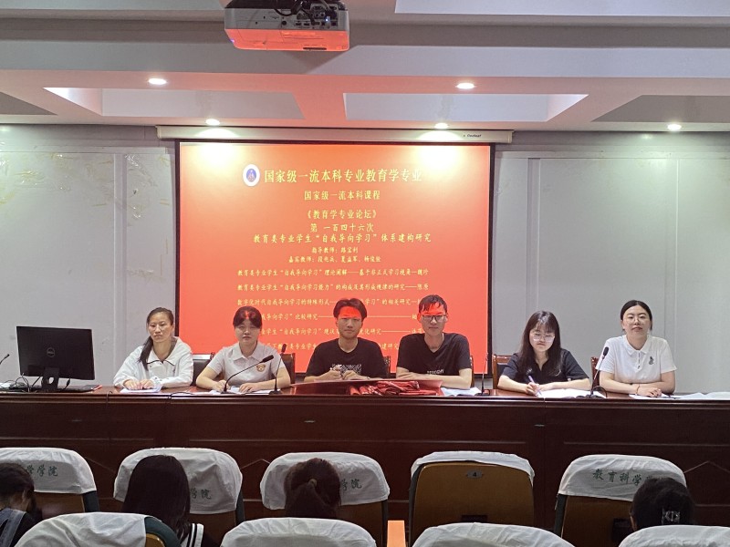 5月14日晚,在教育科学学院三楼学术交流中心,国家级一流本科专业建设点教育学专业第一百四十六次专业论坛成功举办。莅临本次专业论坛有嘉宾教师段兆兵、夏益军和杨俊铨,20级、21级教育学专业全体本科生到场参加,并由20级教育学王悦晓担任主持人。