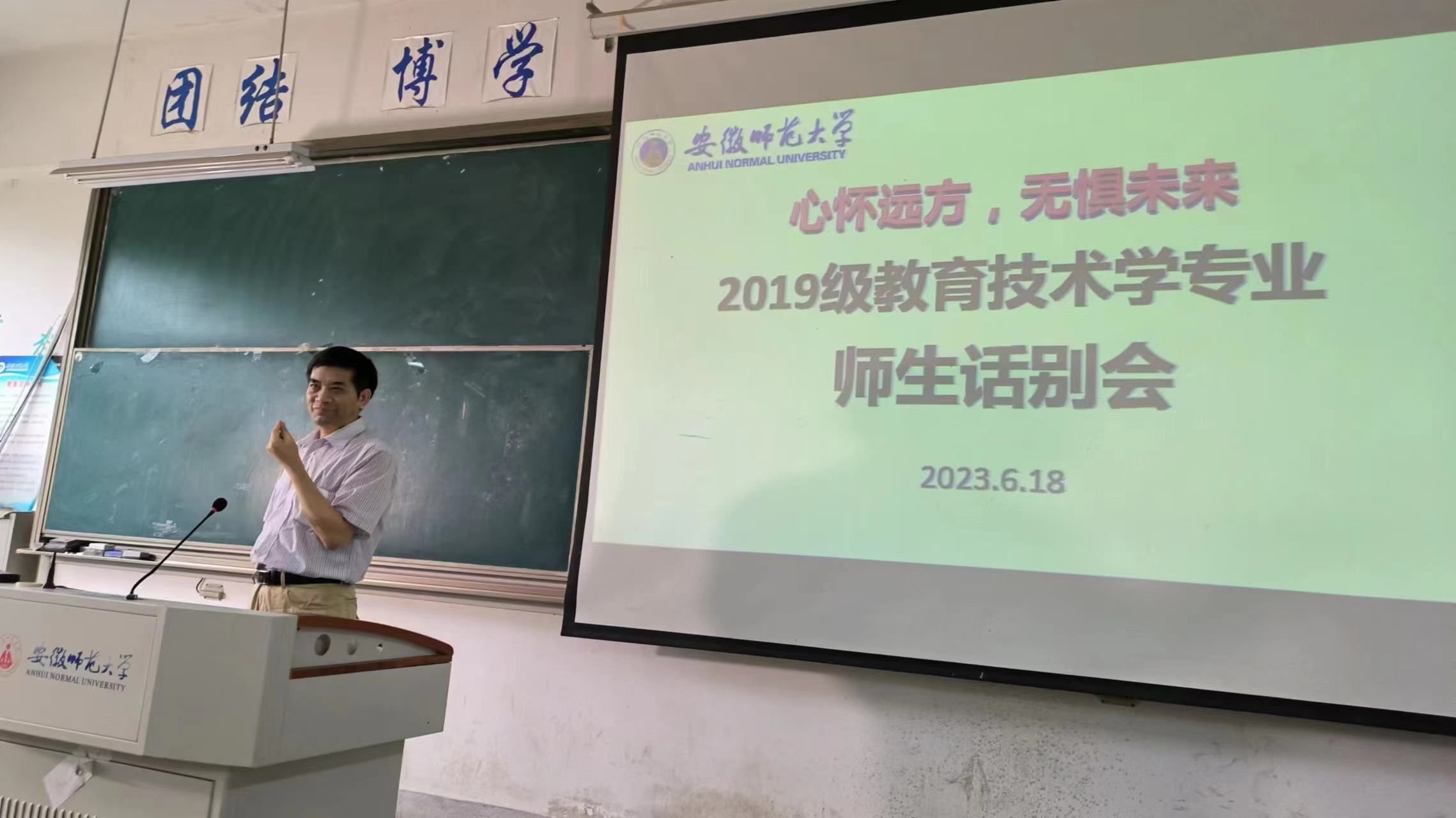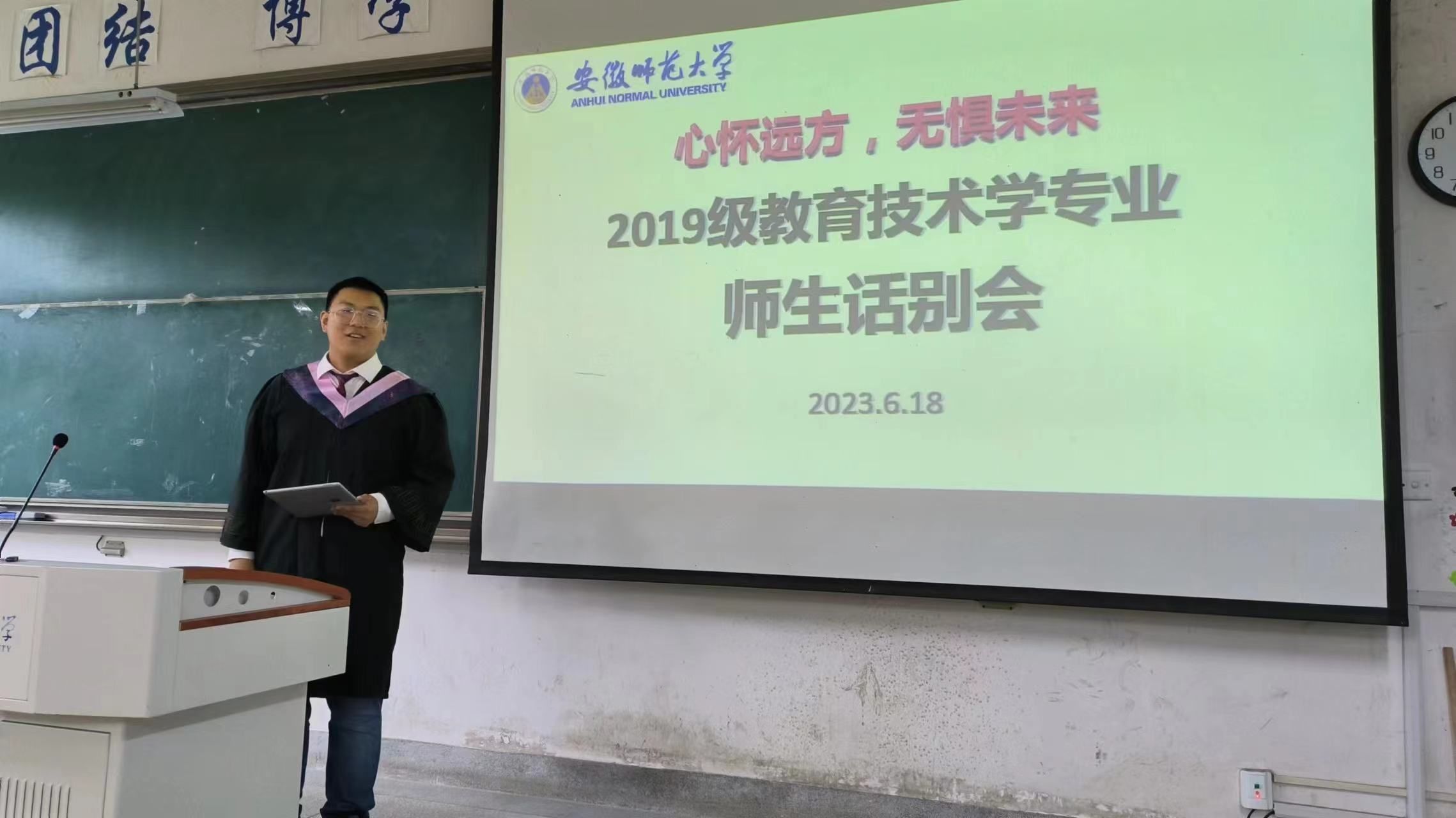 六月夏风过,惜别母校时。6月18日下午,教育科学学院2023届教育技术学毕业生话别会于田楼8101教室顺利举行。话别会由毕业生班长汪梓然主持、张新明、张克松、白倩、聂竹明、陶佳、张帅、席鹏、吴钦金、袁同庆等老师与全体在校毕业生参加。