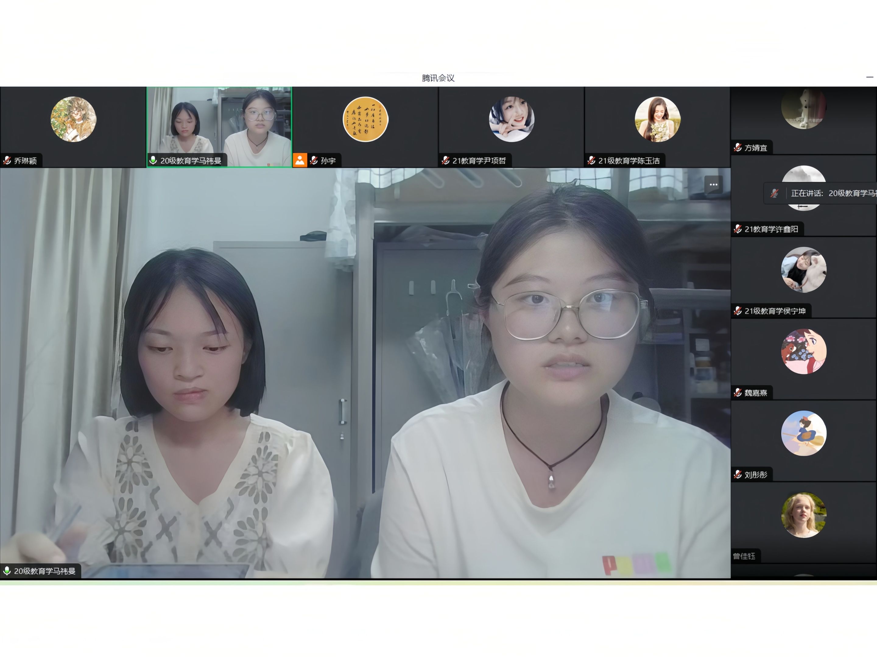 为帮助同学们解答教师资格证报考的相关疑问,掌握教师资格证考试备考的优秀经验和方法,2021级教育学专业于7月7日召开教师资格证考试线上经验交流分享会。教育学专业负责人徐赟,2021级辅导员赵茜,2020级教育学专业彭斓、马祎曼以及2021级教育学专业全体本科生参与本次会议。会议由2021级教育学专业尹项哲主持。