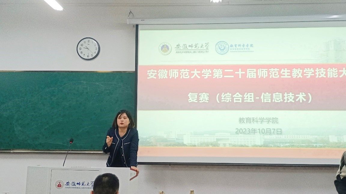 为进一步夯实师范生教学技能,提高师范生教育教学能力,10月7日晚,教育技术学专业在教学楼1507教室顺利开展安徽师范大学第20届师范生教学技能竞赛复赛(综合组-信息技术)。本组比赛由教育科学学院承办,21级全体本科生参加了初赛,21与22级教育技术学全体本科生现场观摩了复赛。比赛特邀芜湖市教科所信息科技学科教研员葛萱、安徽师范大学附属中学顾学雷老师、利民路小学信息办主任李长生主任作为大赛评委。