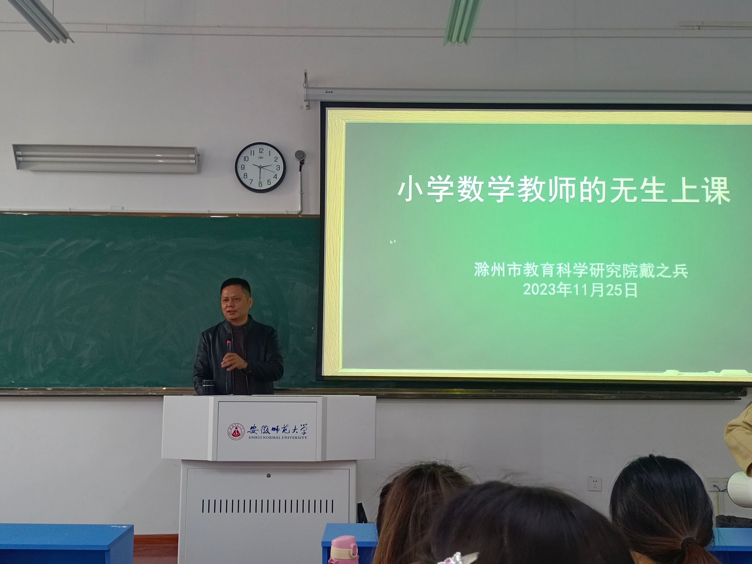 数学学科由戴之兵老师主讲,聚焦《小学数学教师的无生上课》这一主题,戴之兵围绕“什么是无生上课”“小学数学的主要教学内容”“怎样进行无生上课”“几个注意事项”四个环节逐一展开讲解。其中,他着重讲解了数学的框架,建议同学们针对每类题型做好充分准备。立足无生授课,他指出三个关键点:试讲时眼神不能飘忽不定、避免频繁地来回走动、互动时应停顿两秒。无生授课环节,由徐天赐、乔琳颖、孟勤勤和刘银萍四位同学上台展示。戴之兵在点评时指出,课题板书应往高处写,试讲应以谈收获为结尾。其次,他强调授课的难点在于对课本材料的解读,要将材料中题目思路讲解清楚,避免过度向外拓展。