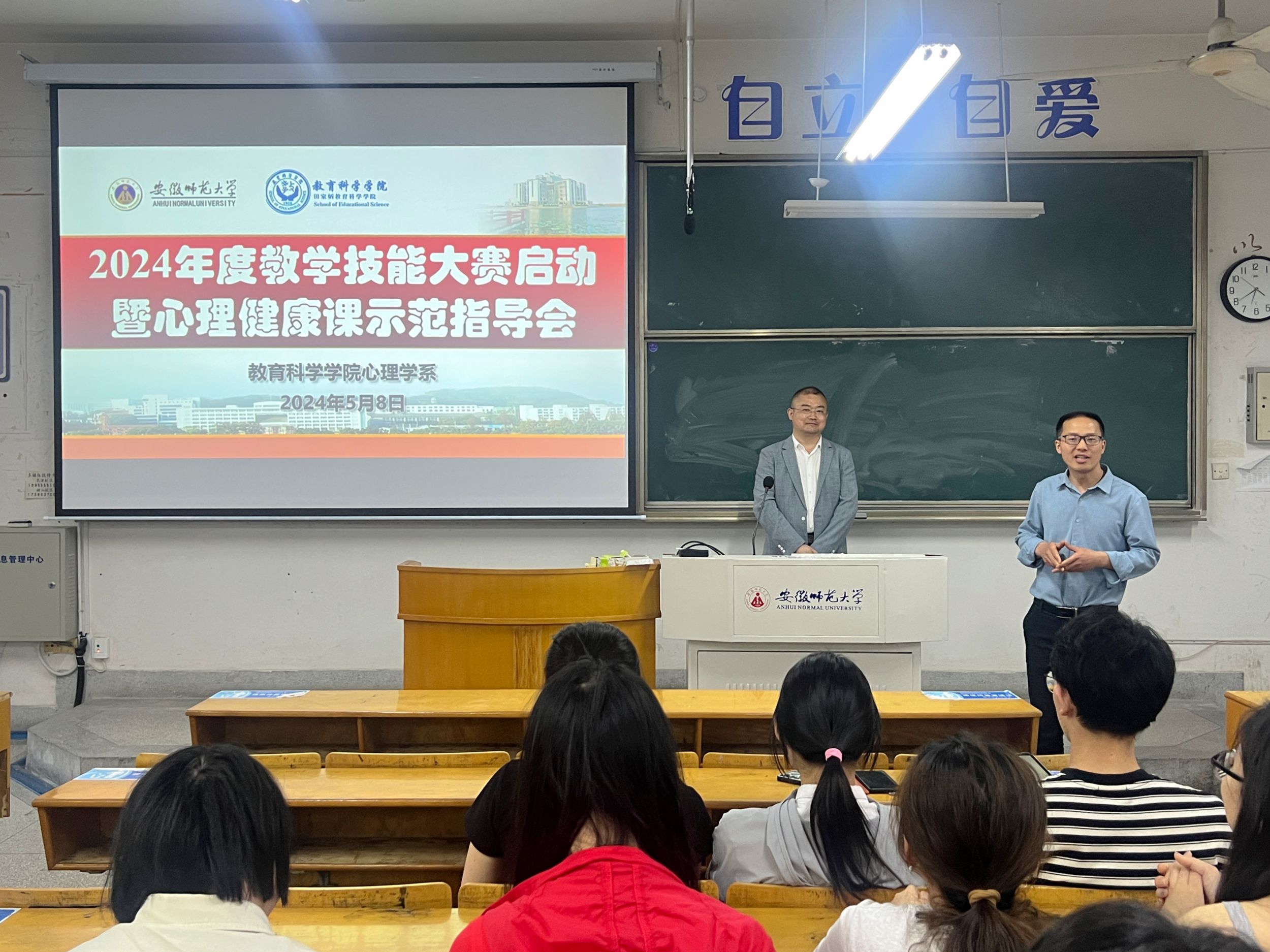 为培养师范生的教育教学技能,进一步提升心理学专业学生的中小学心理健康教育面试应考能力,5月8日晚,心理学专业于田楼8210教室举办2024年度教学技能大赛启动暨心理健康课示范指导会,特别邀请芜湖市南瑞实验学校校长助理、弋江区心理健康教育工作站站长翟光军老师为同学们开展“中小学心理健康教育面试注意事项”专题讲座,2022级心理学专业本科生参加此次会议。会议由心理学专业负责人王礼军主持。
