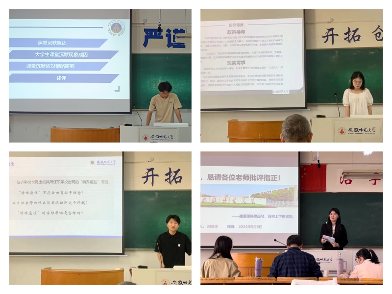 为全面检验本科生毕业论文质量,推进国家级一流本科专业建设,2024年5月6日下午,教育科学学院国家级一流本科专业建设点教育学专业开展2020级毕业论文答辩会。专业将32名同学分为三大组,每组由3位老师担任答辩评委,分别于田楼8301、8303、8304教室进行答辩。参与本次答辩工作的老师有周兴国、段兆兵、路宝利、徐群、肖龙、江珊、吴颖、苏明明、金马妮。