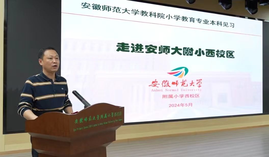 下午,课堂教学观摩结束后,安师大附小西校区的卢校长就学校校园文化建设和校本课程实施管理等方面开展专题讲座,分享了学校坚持以“陶行知‘生活教育’思想”为理念、为孩子终身发展奠基的办学经验。王芳对此次活动的开展给予了高度评价,并表达了对师大附小为我们小教专业学生提供良好见习平台和机会的诚挚谢意。她希望同学们能够珍惜机会,在见习中学有所获,不虚此行。
