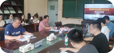 2022级方大伟同学作了题为《生物学建模与科学思维:关系辩证和融合发展》的科研汇报、2022级邱亮晶同学作了题为《职业教育服务教育强国战略的逻辑体系:生成、动力与路径——以现场工程师人才为例》的科研汇报、2023级丁昊同学作了题为《基于随机森林算法的教学准备模型建构》的科研汇报;2023级肖英鑫同学作了题为《城乡两栖乡村教师空间感冲突及消解路径》的科研汇报。与会师生围绕论文选题、逻辑框架、研究方法、研究结论以及论文学理性等内容进行了深入交流和讨论,为后续论文的修改提出了宝贵意见。
