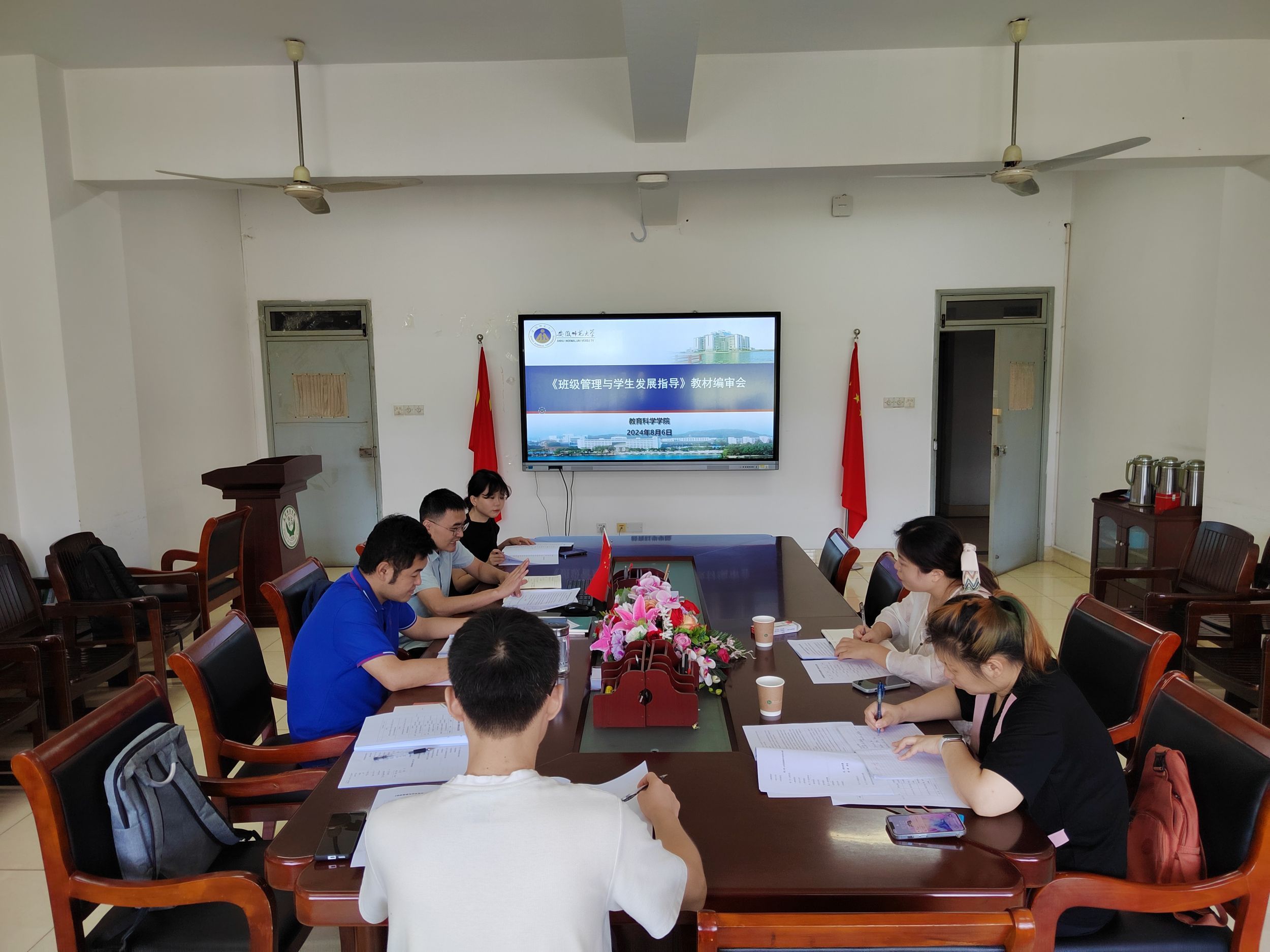 8月6日上午,《班级管理与学生发展指导》教材编审会在学院308会议室顺利召开,副院长韩建涛、教材编写团队成员及安徽大学出版社专家共同参与了此次会议,会议由《班级管理与学生发展指导》课程负责人谢宇主持。