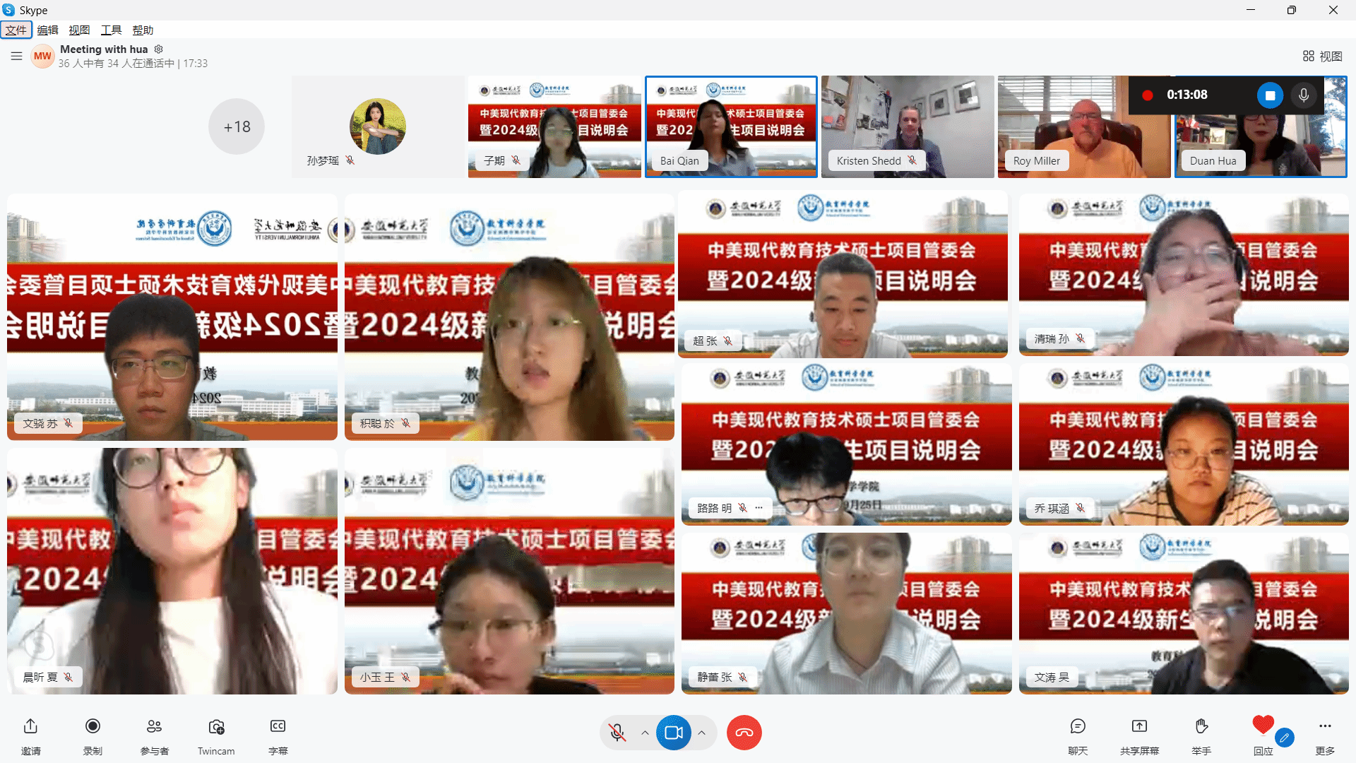 2024年9月25日晚上,安徽royal皇家88平台联合美国约翰逊大学教育学院开展了现代教育技术(中美合作)硕士项目管委会暨2024年项目说明会,会议采用线上的方式进行。美国约翰逊大学有教育学院的院长Roy MIller、国际招生官Kriten Shedd以及国际关系主任段华参加了本次会议,安徽师范大学国际交流合作处的葛亚东副处长、教育科学学院的吴文涛副院长、国际交流合作处的外事秘书张超、现代教育技术(中美合作)学位点负责人白倩以及全体24级现代教育技术(中美合作)专业的研究生参加了本次会议。