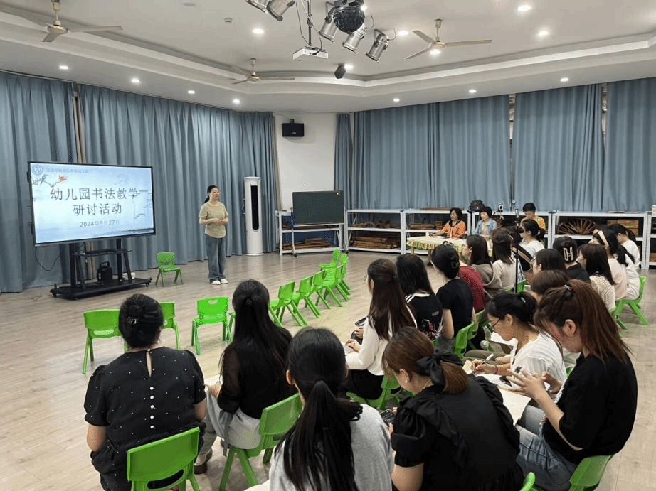 2024年9月27号上午,2023级学前教育专业研究生在赵学菊老师的带领下,赴芜湖市春晖幼儿园观摩书法公开课展示活动。参加观摩活动的还有春晖教育集团督导、前芜湖师范附属小学校长潘晓银,春晖教育集团督导、前芜湖师范学校党委书记姚进以及幼儿园部分老师。
