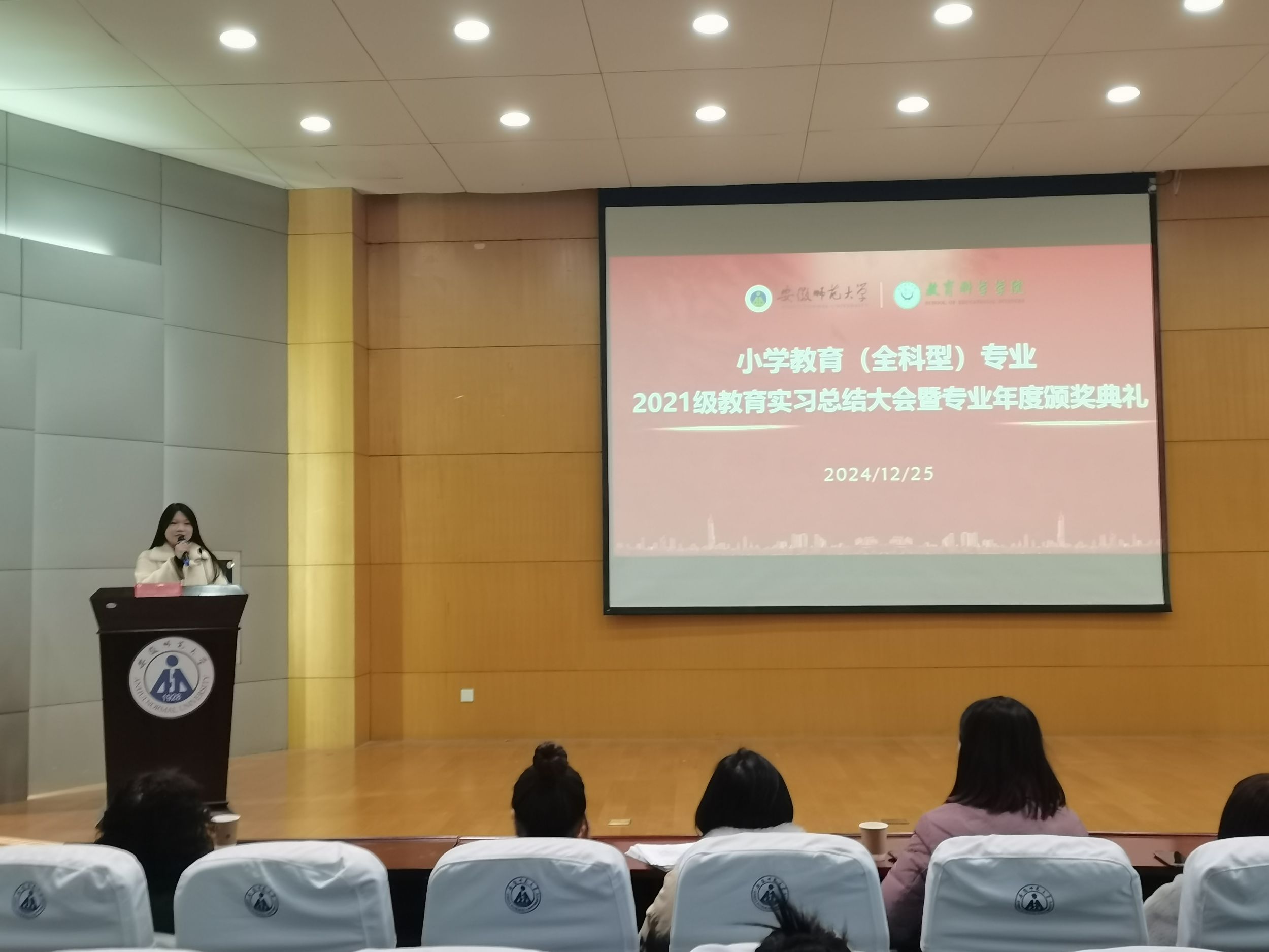 实习成果丰,总结经验长。12月25日下午2时,2021级小学教育(全科型)专业在田楼报告厅召开教育实习总结大会。小学教育专业负责人王芳老师、全体实习指导教师、2021级全体同学及22-24级同学代表参加了本次大会。会议由2022级学生于东如主持。