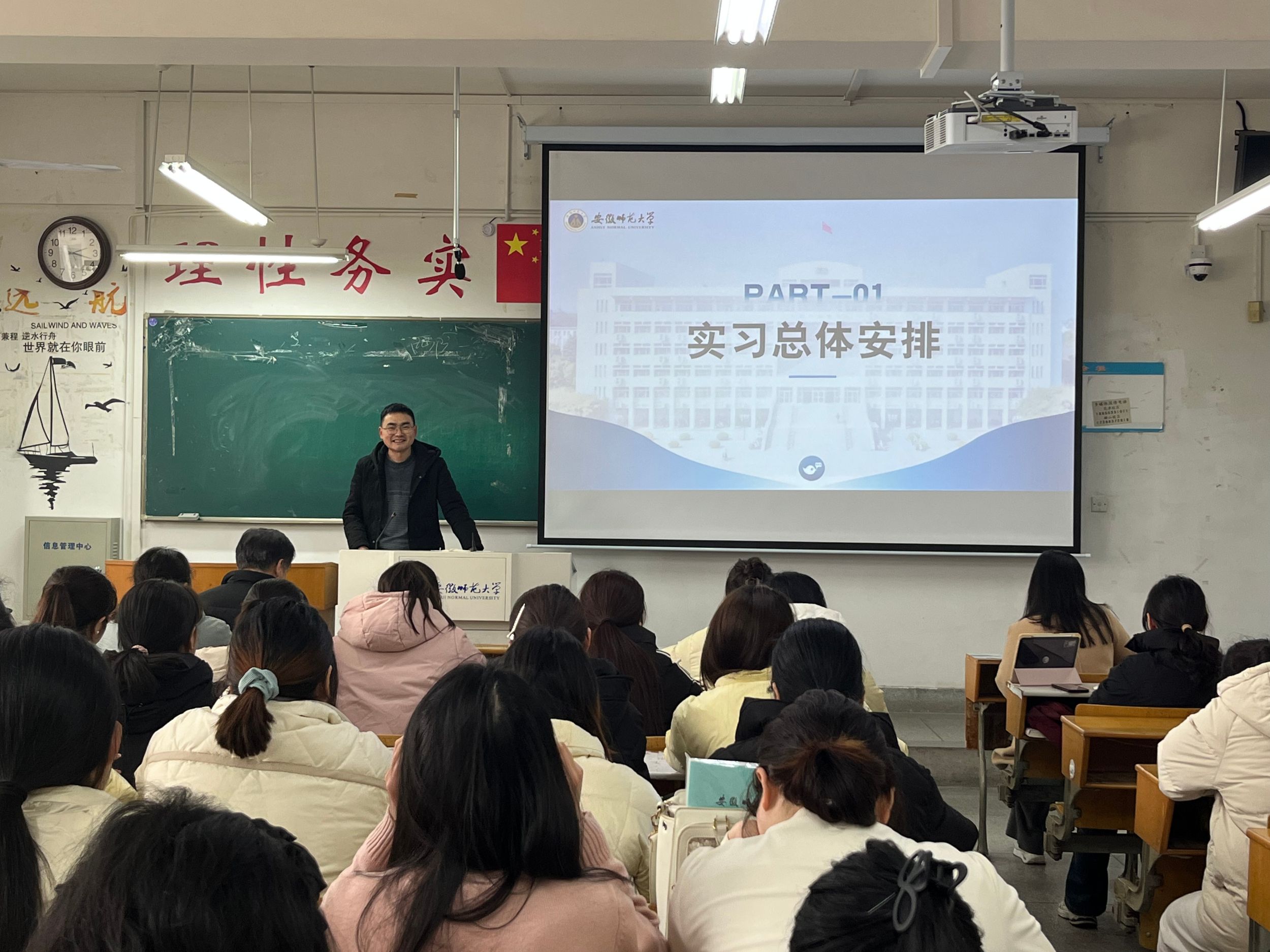 2024年2月21日下午14:20,安徽royal皇家88平台2022级小学教育(复合型)专业全体本科生在田楼8203教室召开教育实习动员大会。教学副院长韩建涛、专业负责人陈娜、辅导员程雅楠以及姚运标、杨俊铨、魏晓敏、江珊等指导老师参加会议。大会由学习委员桂星雨主持。