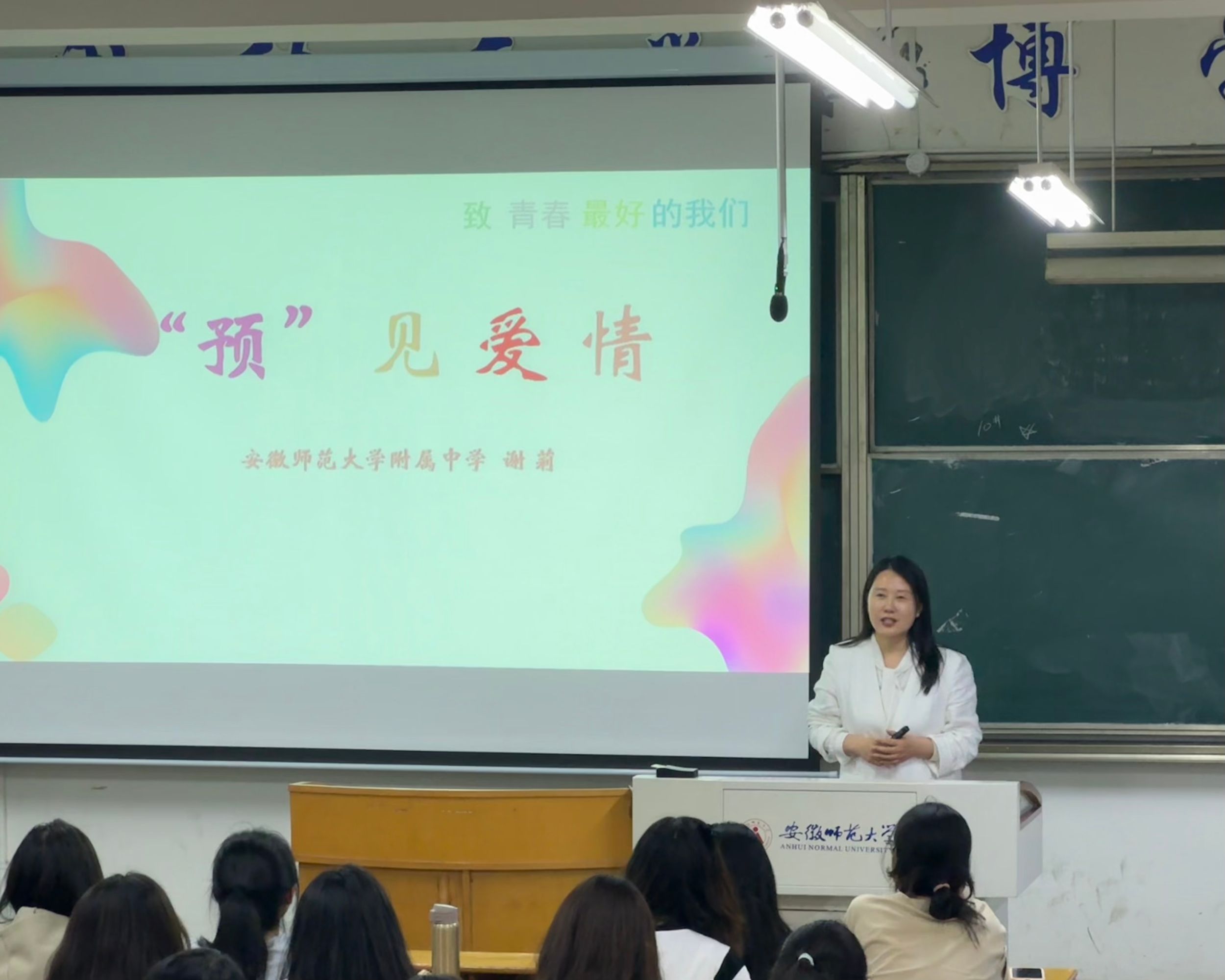 为提高心理学师范生的心理健康教育能力,全面提升心理育人实效,心理学专业于5月15日在赭山校区田楼8302教室举办第四期“优质心理课示范教坛”活动,以沉浸式教学示范引领学生探索心理课堂的育人魅力。本次活动特邀安徽师大附中德育副主任、中学高级教师谢莉担任主讲嘉宾,由心理学专业负责人王礼军主持,2023、2024级全体本科生参与活动。