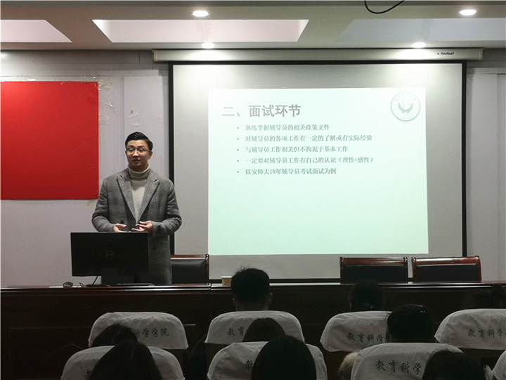 此次讲座为即将参加高校辅导员招聘考试的同学们提供了宝贵的经验,让备考辅导员的学生有了更明确的方向。