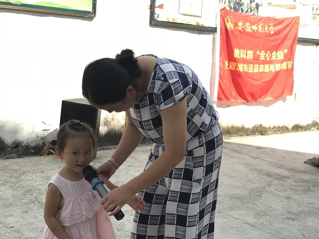 一首《送别》之后,为了更好地让家长了解本次暑期社会活动的出发点和落脚点。安徽师范大学教科院“全心全益” 赴宣城市泾县志愿与调研团队队长夏莲香上台致词:感谢安徽师范大学给予的机会,感谢安徽省宣城市泾县团委以及皖南第一希望小学对团队工作的支持,感谢在座家长对于本次志愿活动的理解与支持。希望通过他们的行动,影响一批人,将爱心传递下去。在队长夏莲香讲话后,队员代表与学生代表分别上台发言,他们表示:十几天的日子虽然短暂,但是这十几天都过得非常充实。最后由家长代表上台发言,他表达了对团队的理解和感谢。