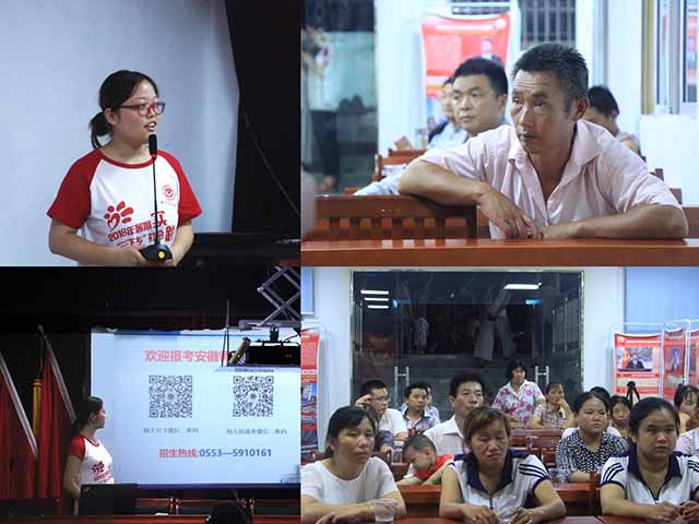 安徽师范大学招生宣传大会暨健康生活知识讲座于八点半正式开始,主持人张先悦同学首先对安徽师范大学进行了简要介绍,岳荣同学带领支教团队全体成员齐唱安徽师范大学校歌。团队向与会村民放映展示了《安徽师范大学建校90周年专题宣传片》及《安徽师范大学宣传片——追梦》,并由主持人张先悦同学做招生宣讲。