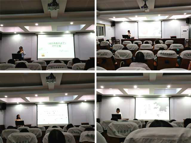 同学们的汇报各具特色、精彩纷呈。有同学在阅读书籍之后,收获了更多的人生智慧,比如感恩、诚信、自尊自爱、接受和改变、理想和责任等等。有同学以诚挚的话语带领大家回顾了长征的故事,《画说长征》的故事又一次感动着我们。也有同学汇报时风格迥异,或沉稳从容,或活泼可爱,但都共同阐述着同一个主题:唱响青春主旋律,唱响我们的青春之歌。也有同学结合生活实际,以“碎片化时间”为切入点,结合图表的形式向大家说明碎片化时间的利用问题。部分同学结合专业特色,从不同的书中得到同样一种理念——用爱和尊重引领教育,让孩子学会尊重和爱。另外,一些同学以婉转动听的语言讲述了动人心弦的哲理童话——《小王子》,传递了“慢下来”的智慧。