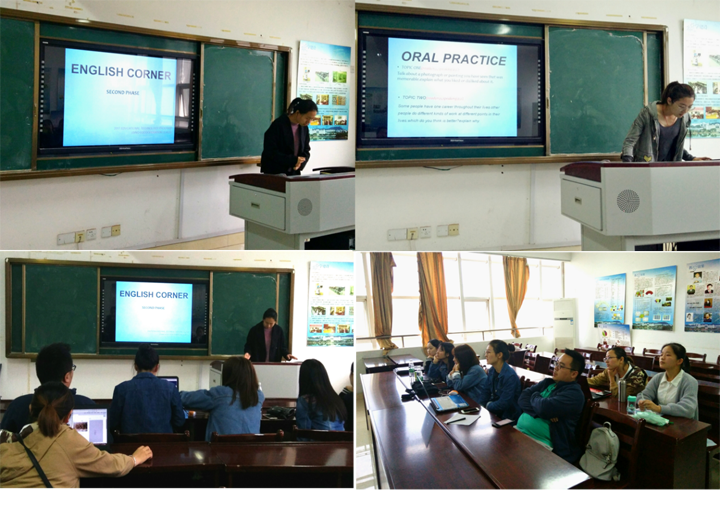 首期“英语角”活动于10月16号在教育科学学院412教室拉开帷幕。同学们根据约翰逊大学指导老师的要求,解读相关文件,就即将开始的留学申请材料的准备工作进行了热烈的探讨。活动由专业成员轮番担任主持人,为大家准备话题、搜集材料,充分发挥了每个学生的主动性和积极性。