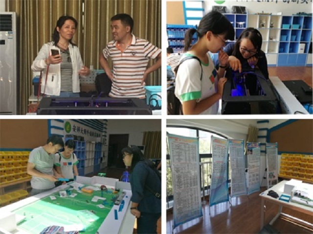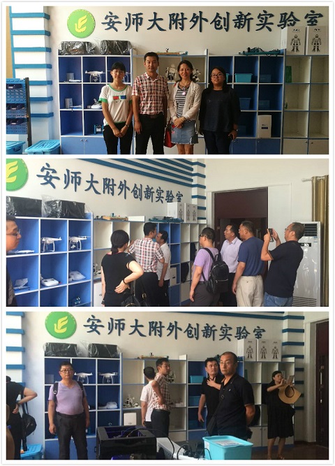 2017年7月21日,青芒创客协会在陶佳老师的带领下走进安师大附外创客空间,开展了与一线中小学的对接工作。活动期间,安师大附外创新实验室负责人秦老师带领协会成员参观了该校落成不久的创新实验室。整个实验室外观大方,采用斜体构建方式,样式新颖,实验室内设备齐全,安徽原创科普技术有限公司工作人员详细介绍了机器人运行方式,3D打印机的相关知识运用以及原理等,打开了创新教育的新思路。随后,安师大附外实验室负责老师向参观人员分享了实验室自开放教课以来所取得的国家级、省级以及市级奖项。