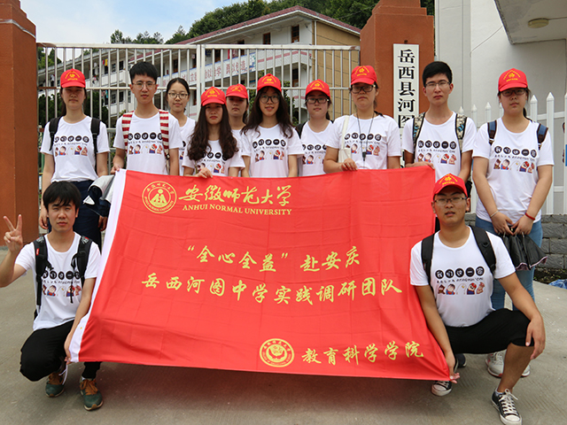 本网讯(教科院 于海艳)为深入学习贯彻习近平总书记系列重要讲话精神,引领大学生践行社会主义核心价值观,发动大学生积极参与社会公益事业,教科院“全心全益”赴安庆岳西河图中学实践调研团队在队长王金晶的带领下于7月5日正式开展暑期支教调研活动。