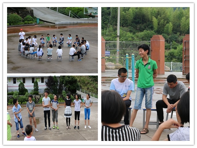 为了进一步了解当地学生的需要,更好地进行实践活动,在实践活动伊始,团队成员就与孩子们一起进行了以“敞开心扉交朋友”为主题的破冰活动。活动在未开始时就出现了一幅有趣的画面——在孩子们和团队成员一起围成的圆圈中,男生和女生分别占据了圆圈的一半。为此首先进行的游戏就是“大风吹”,通过这个游戏打乱孩子们的座位,活跃了现场的气氛。为了加深孩子们与团队成员之间的了解,紧接着进行了“滚雪球”、“开火车”等趣味小游戏,拉近了孩子们与团队成员之间的距离。在破冰活动的最后,团队成员向孩子们征集了他们想玩的游戏,孩子们的回答各种各样。不仅有“长江黄河”之类的体育活动,还有“抢凳子”之类的考验反应力的游戏。在了解到孩子们的想法后,团队成员表示将会把孩子们的想法融入到未来的实践活动中。