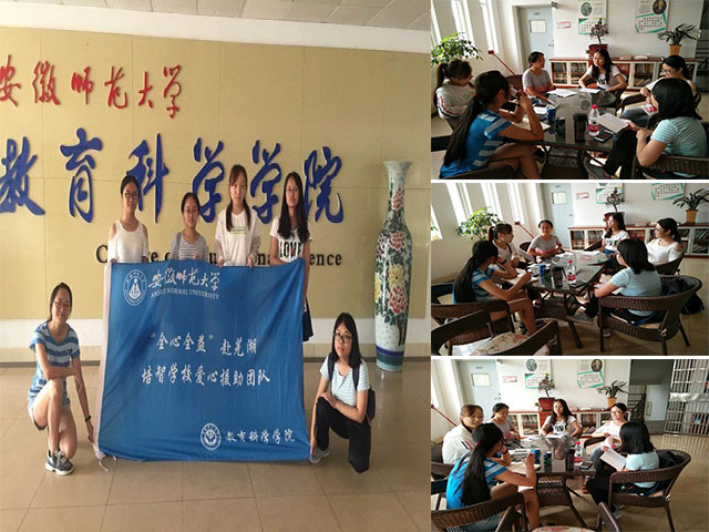 本网讯(教科院 金一丹)为响应我校“青春三下乡”暑期社会实践活动,教科院赴芜湖市培智学校爱心援助团队在队长吴文瑞的带领下奔赴各地以丰富多彩的形式展开一系列团学活动。