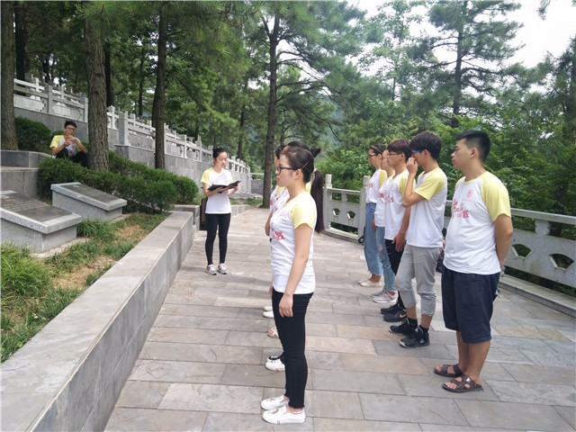 7月8日,团队前往宣城市泾川镇皖南事变烈士陵园和陈列馆。烈士墓前,队员们在国歌声中向烈士们致以最崇高的敬意。2015级心理学专业的徐正媛作为队长,她代表团队向烈士们宣读致墓词:“我们怀揣真诚,轻轻地来到这里,静静地站在烈士墓碑前,向英勇的革命先辈们致以崇高的敬意,祭奠他们的英魂,寄托我们的哀思……”。陈列馆内一杆杆步枪,一颗颗子弹,每一件文物都展现出烈士们勇往直前、毫不畏惧的革命精神。队员们在留言墙上写下“国殇虽逝,英名不灭。皖南事变,死难将士永垂不朽!”字字铿锵有力,笔笔心怀敬畏。
