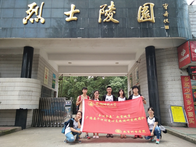 为进一步追忆革命先辈,弘扬革命精神,实践团队自发前往广德县烈士陵园进行追悼。桐川汭水,源远流长,皖南广德,红色热壤。在八十余载革命与建设的征程中,无数革命烈士献出了自己宝贵的生命。黑色大理石上,烫金的“烈士陵园”显得格外肃穆,队员们在负责人的导引下,对曾经的革命先辈进行了一定的了解,并表达了自己的缅怀。