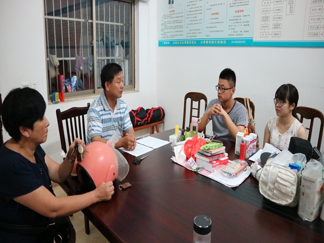 招生宣传工作结束后,队员们对于今天的工作进行了简单的总结,在队长的带领下进行了一定的讨论,并对转天的工作进行了详尽的安排,就着窗外的寒雨,千口村村支部书记陈义荣与副书记沈梅仙到访慰问,并就千口近况、我校学子与当今教育形势与同学们进行了交流讨论。陈义荣书记先从千口当地的基本情况谈起,并指出我校在千口村进行教育实践活动由来已久,在当地已有一定的基础。借此,陈书记对我校的学生培养予以肯定与赞扬,同时也提醒同学们,作为安师大的学生,进行爱心支教,做科学调研一定要明确教育的目的,不能功利化。他还格外强调了优秀校友的积极作用,以自身为例,鼓励同学们要努力做当代优秀青年,在日新月异的当今社会,要坚定信念,对优秀传统文化进行继承与发扬,做一个“古今人”。陈书记的话引起了同学们的极大肯定与思考,并就一些问题与他进行了讨论。
