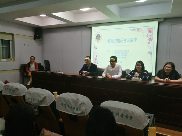 本网讯(教科院 钟曦蕊 代青清)正值教师资格证改革之际,我院2015级教育学专业在辅导员与班委的组织下,于4月14日晚七点半在田楼B座三楼学术交流中心举办了一场以教师资格证为主题的经验交流会。本次经验交流会邀请到13应用化学狄光源,14教育学张理强、高甜甜、李曦等四位同学,实习辅导员刘小平主持了此次交流会,我院团委副书记、2015级辅导员莫大贡出席了此次交流会。