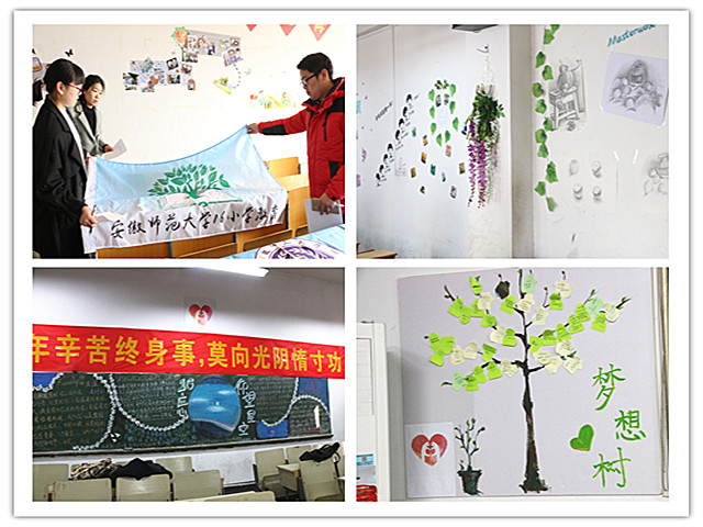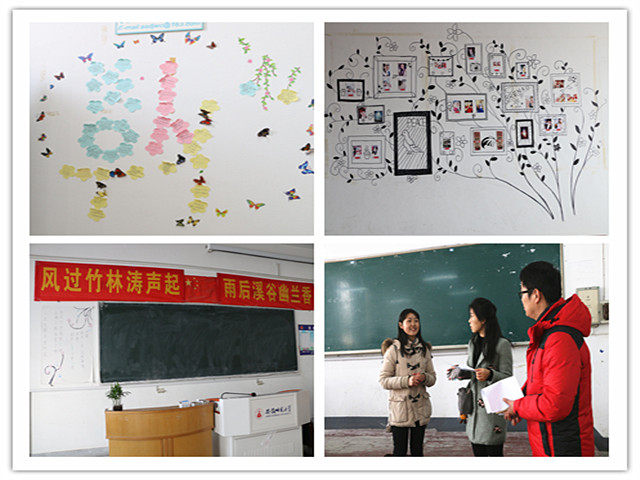 各个专业围绕“明德”主题对教室进行了精心的装扮。精致的手工、栩栩如生的绘画体现出了学前教育专业的心灵手巧;“以爱注心,放飞心灵”主题板报展现应用心理学的特色;以蝴蝶为主体的“蝴蝶效应”展现了教育学的小力量汇聚大能量;学前中美的“倾听梦的声音”则表现出梦想高飞的追求;“风过竹林涛声起,雨后溪谷幽兰香”体现心理学同学们文雅修身的态度;小学教育以及教育技术专业的班级绘制体现了班级特色,令人印象深刻。