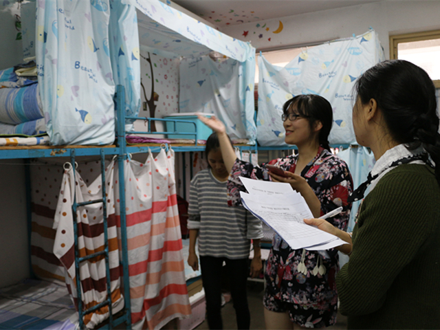 本网讯(教科院 徐如瑾)为了营造良好的寝室文化气氛,发挥寝室特点,丰富大学生活,弘扬个性创新并促进寝室、同学以及班级之间的交流与沟通,我院于10月22日举办寝室设计大赛活动,在15级辅导员莫大贡老师、16级辅导员随小莉老师和朱雨雁老师的带领下,院学生会的工作人员对参赛寝室进行了评比。