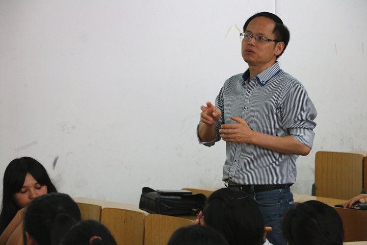 会议伊始,张更立老师以诙谐幽默的语言向同学们做了简明的自我介绍, 同时介绍了出席会议的领导老师。接着张老师从筹建情况、师资情况、教学资源与培养方案等四个方面介绍了安徽师范大学学前教育这个年轻而富有实力的专业。之后,张老师以简明扼要的语言阐述了安师大学前教育专业雄厚的师资力量、系统的说明了专业人才的培养依据与学前教育专业的课程设置,极大的增强了同学们对本专业学习的信心。而在人才培养方面,张老师提出了“保育教育并重”的培养方针,同时向同学们推荐了《学前教师教育课程标准》、《幼儿园教师专业标准》等必读书籍与文件,为学前教育专业的学生接下来的学习与发展提供了方向。