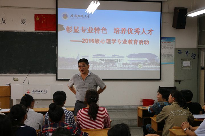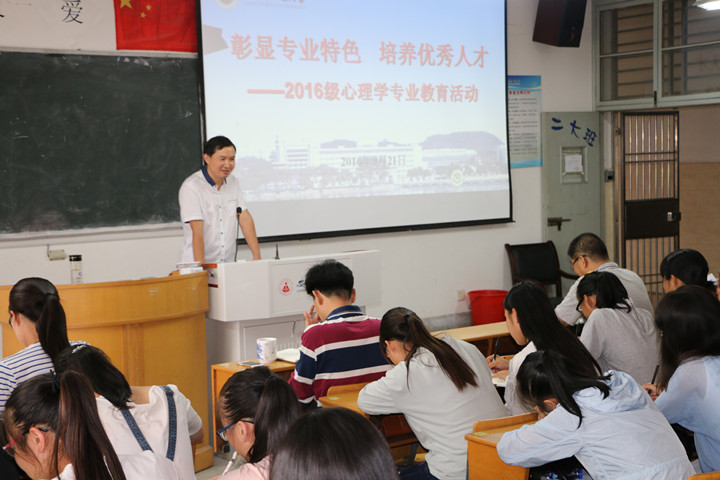本网讯(教科院 邵琦)金秋送爽,金桂飘香。2016年9月21日,我院心理学专业师生见面会在田家炳楼正式召开。本次见面会由方双虎老师主持,出席本次见面会的有教科院院长桑青松教授,以及李小平,孙文强,郭振娟,刘伟芳等各位任课老师,新生辅导员朱雨雁,还有全体2016级心理学专业新生。