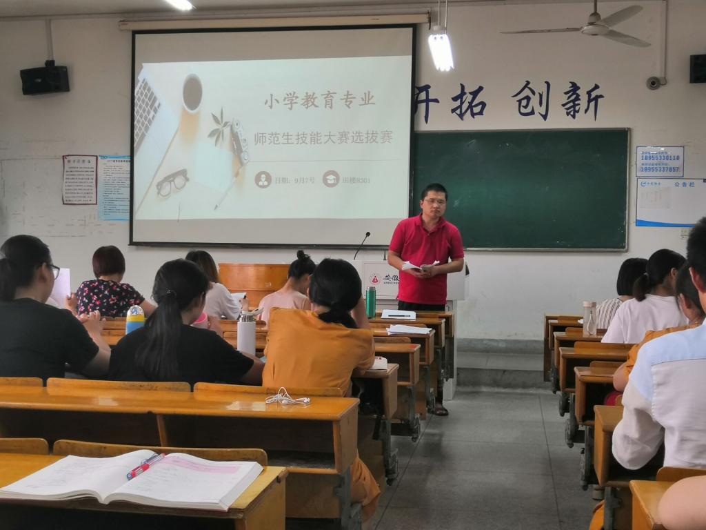 (本网讯 教科院 吴姚姚)2019年9月7日下午3点安徽师范大学教科院小学教育专业在田楼8301教室开展了师范生技能大赛活动。师范生教学技能竞赛是彰显我校办学特色的重要竞赛,可以提升师范生的专业教技能,训练扎实的教育教学基本功。小学教育专业围绕这一思路开展工作,高度重视,广泛宣传鼓励同学们踊跃参加,并精心组织了本次比赛,形成了独具特色的专业活动。
