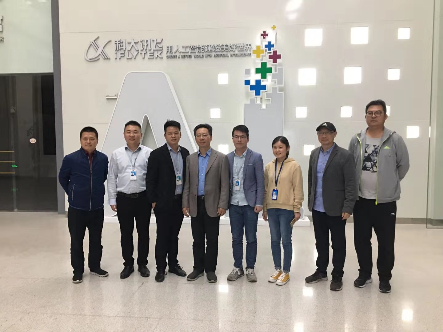 科大讯飞是一家专业从事智能语音及语音技术研究、软件及芯片产品开发、语音信息服务的企业。走进科大讯飞,浓厚的科技气息、现代化建筑,以及花园式的园内布景,令大家不禁驻足,拍照留念。在科技展厅内,同学们完全被琳琅满目的高科技产品吸引了,尚未来得及惊叹,讲解员就带领大家走进了AI+的世界:语言输入法,娱乐,汽车,医疗,政务,教育,出行……AI在科大讯飞与一个又一个的领域结合,创造出了无数令人惊叹的奇迹,令在场的同学们纷纷叹服。而其中师生们关注的焦点则是AI+教育。在教育方面,科大讯飞星阅卷系统在试卷的主观题(包括作文)的批阅上有了快速的发展,在根据学生的知识网络开展个性化教育的领域成绩也十分突出,令人难忘。
