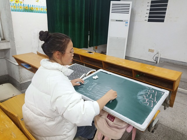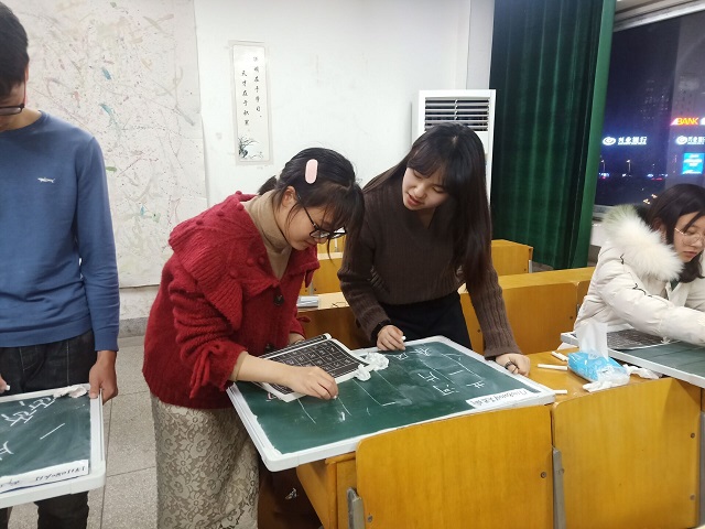 本网讯(文/于硕 图/俞晓雨)临近期末,教育学专业17、18、19三个年级分别于12月9日、12月6日、12月5日开展了粉笔字讲字活动,对本学期的粉笔字练习工作进行了总结。17、18、19年级全体本科生参加各班讲字活动。由18级练字小组的同学反馈本学期各班同学的练字情况,并就重难点部分进行讲解。其中,18级俞晓雨担任讲字活动的指导老师,17级蔡婉玉,18级张洁、袁慧负责现场指导工作。