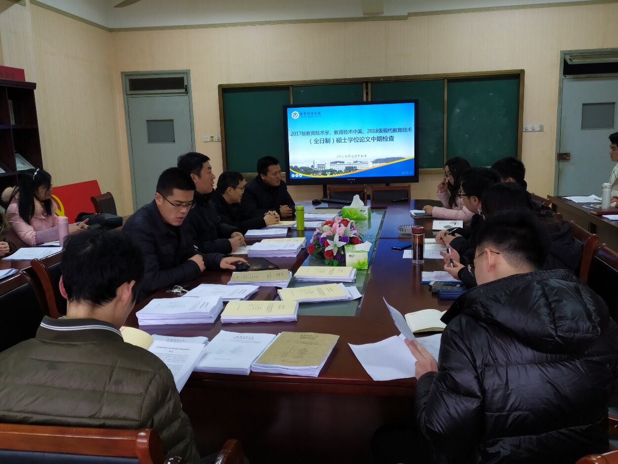 (本网讯 叶方舟 李曼)1月15日下午,我院在408会议室开展了教育技术类专业全日制硕士学位论文预答辩与非全日制硕士论文开题汇报会。芜湖职业技术学院副院长孙晓雷教授、科大讯飞教育技术研究院王亚飞副院长、学校信息中心吴长义副主任以及学院聂竹明教授、许之民副教授、吴文涛副教授担任开题和预答辩指导老师。17级教育技术学、17级教育技术学(中美合作)和18级现代教育技术(全日制)、(非全日制)专业三十余名研究生到场参加会议。