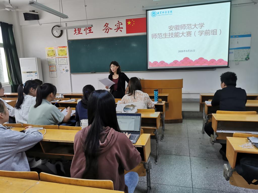 本网讯(教科院 刘淼)为进一步提高师范生实践教学能力和创新能力,彰显师范特色,强化学生教学技能。 9月25日-27日,我院先后在田楼8203、8205、电钢教室和舞蹈房组织开展了校第十七届师范生教学技能大赛学前组比赛。本次比赛内容由说课、钢琴、舞蹈三部分组成,考察了参赛选手教学设计、专业技能等综合能力。大赛由王路曦老师主持,说课环节由陈海燕、李元元、夏世瑾三位老师共同担任评委,钢琴比赛由李晓博老师担任评委,舞蹈技能比赛由葛燕老师担任评委。