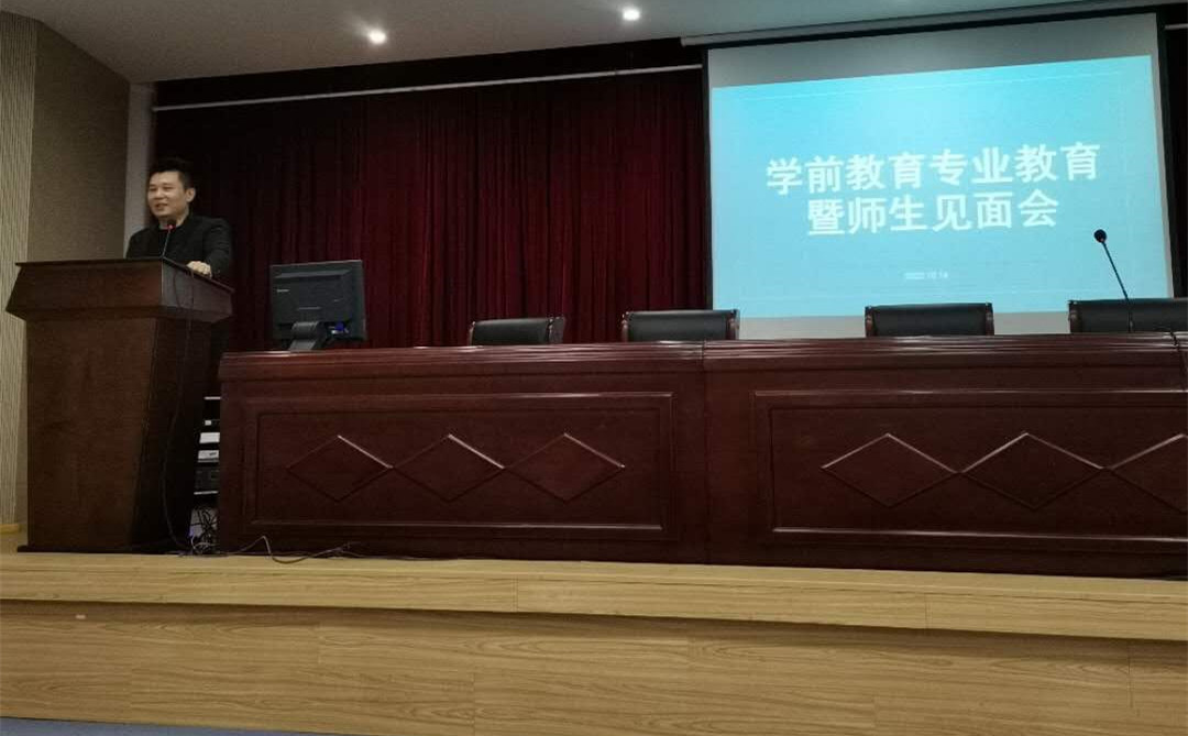 本网讯(教科院 陈春玲、周蓉程)为了加强师生之间的沟通交流、帮助学前教育专业2020级新生尽快适应大学生活,10月15日晚,学前教育专业在图书馆一楼学术报告厅举办了2020级新生专业教育暨师生见面会。张更立、孙德玉、吴玲等12位专业老师及辅导员蔡文老师出席会议,2020级学前教育全体98位新生参与会议,会议由学前教育专业负责人王路曦老师主持。