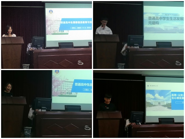 第四位汇报人何新徽以《普通高中学生生活发展指导的三元构建》为题,阐明高中学生生活发展指导的意义与内容,提出学校、社会、家长三方共同致力于普通高中学生生活发展指导制度的构建。第五位汇报人聂义岭根据《普通高中生涯规划指导探究》主题,基于舒伯德生涯发展理论、帕森斯德特质因素理论以及认知信息加工理论对普通高中生涯规划指导进行分析,借鉴国外相关实践与启示,提出普通高中生涯规划指导的改进之策。