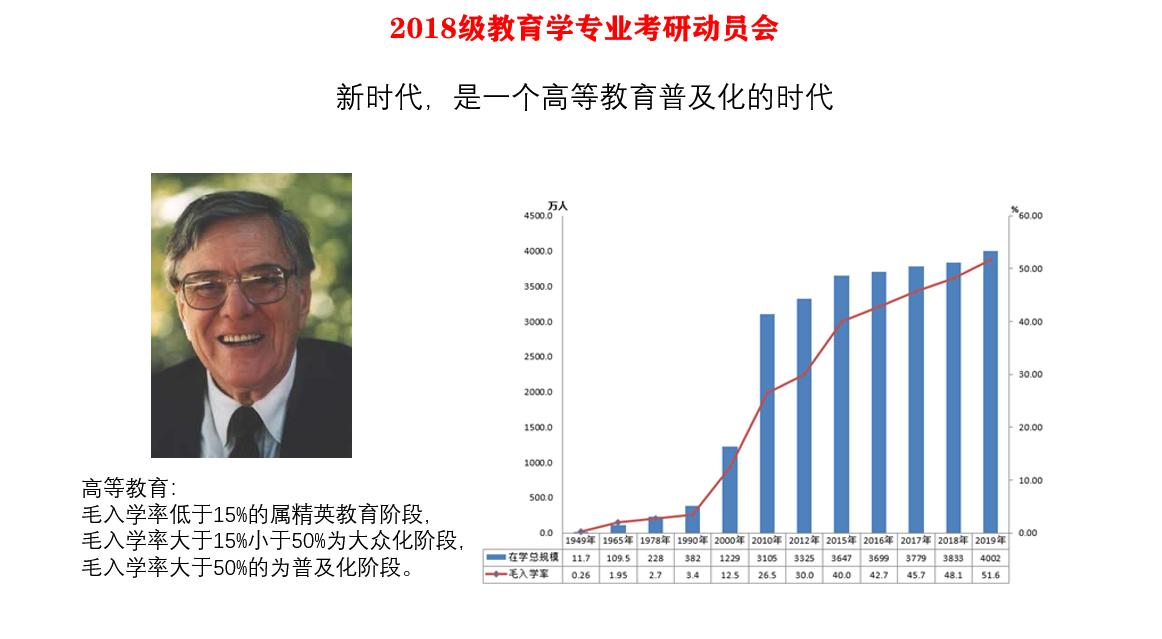 徐赟老师首先就“你为什么必须考研”“你为什么不考研”两个问题给在座的学生以警醒。首先,他用清晰的图表和数据呈现当前研究生招录情况和就业形势。徐老师指出,新时代是一个高等教育普及化的时代,自2019年开始,我国就实现了高等教育的普及化。从报录比来看,攻读硕士研究生虽然没有变难,但在普及化时代,拥有研究生或更高的学历才能在社会就业市场的分层和分工中占据优势。其次,他从学术研究和基础教育教师两种发展路向,分析了研究生学历将改变同学们的职业生涯的发展模式和前景,并用往届生和在职教师读研的数据,鼓励同学们尽早读研。最后,徐老师从研究生阶段的培养特征出发,向同学们说明读研对个体思维水平的提升作用、对个体精神生活的享用功能等,希望大家通过考研究生提升自己创造价值和服务社会的能力。