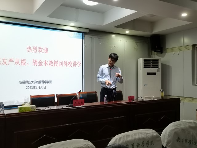本网讯(文/张思雪 图/魏珍)5月30日下午,应教育学专业邀请,优秀院友杭州师范大学教育学院副院长严从根教授和陕西师范大学胡金木教授莅临我院三楼学术交流中心,为本科生开展专业生涯发展和规划报告。报告由姚运标老师担任主持,教育学专业本科生参与。