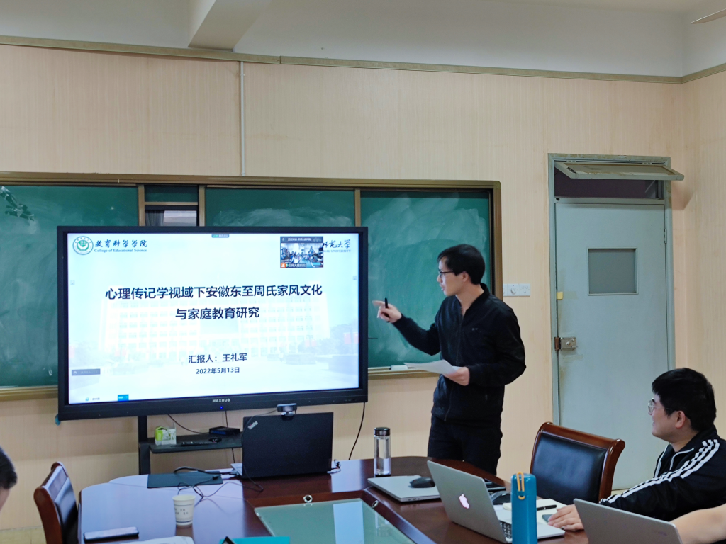 围绕论坛专题,王礼军、万振东两位老师依次做了精彩的学术分享。王礼军老师汇报的主题是《心理传记学视域下安徽东至周氏家风文化与家庭教育研究》,主要分析了研究周氏家风文化与家庭教育的意义,周氏家风文化的传承脉络、发展特点、文化内涵及其对当前家庭教育的启示;万振东老师汇报的主题是《“主体性”的澄明、消解与重构——批判心理学的批判》,主要向大家介绍了批判心理学的内涵,指出批判心理学具有崇尚知识的主观性、强调心理学的解放性、注重理论的演绎性等特点,并分析了批判心理学目前存在的问题,提出未来的心理学建设应树立辩证唯物主义认识论,秉持整合视野,从而真正建构一种为人类命运共同体服务的心理学。